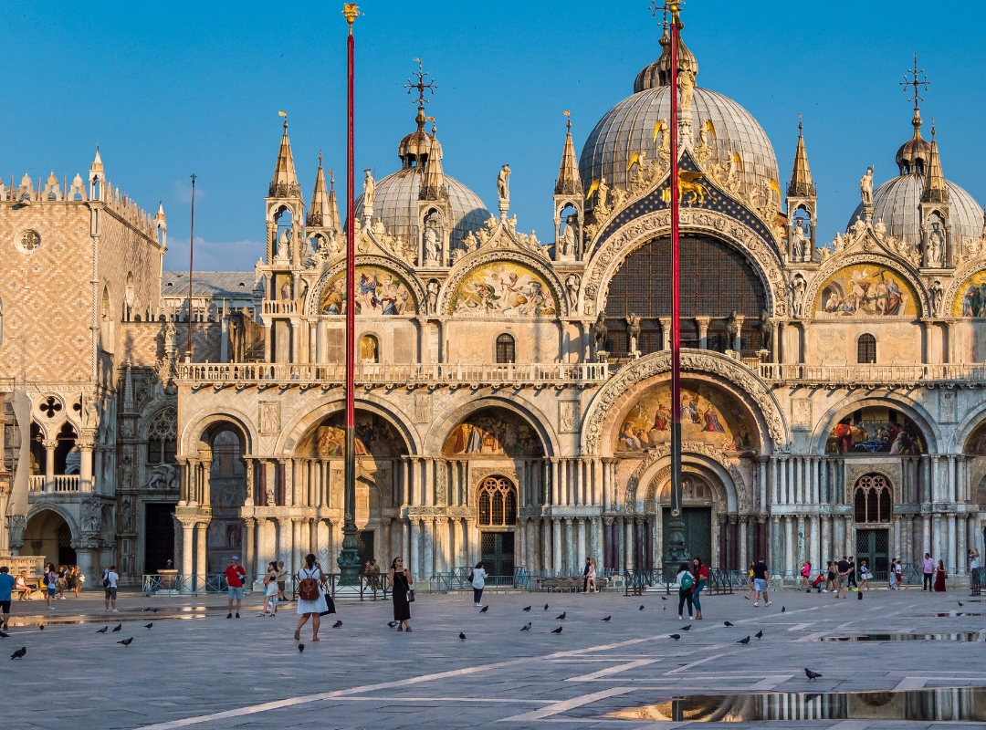 Nuestra ruta guiada nos lleva al majestuoso Barrio de San Marco. Aquí, el tiempo se detiene mientras observamos la grandiosidad de la plaza y sus emblemas: la Basílica dorada, el Campanario y la hipnótica Torre del Reloj. Pasearemos hasta el melancólico Puente de los Suspiros, adyacente al histórico Palacio Ducal, un lugar clave para entender el pasado veneciano.